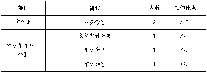根據(jù)工作需要,經(jīng)研究決定,現(xiàn)面向社會公開招聘方式補(bǔ)充集團(tuán)總部、有關(guān)單位審計人員65人,F(xiàn)將有關(guān)事項公告如下:
