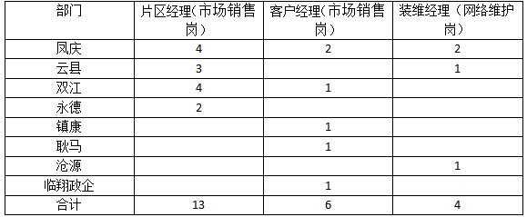 市場(chǎng)銷(xiāo)售崗位19人,網(wǎng)絡(luò)維護(hù)人員4人(年齡20-45歲,應(yīng)屆畢業(yè)生優(yōu)先、有經(jīng)驗(yàn)者優(yōu)先)