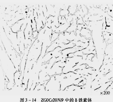鑄造的鉻-鎳奧氏體不銹鋼,鑄態(tài)化學成份不均勻,鐵素體形成元素偏聚區(qū)。