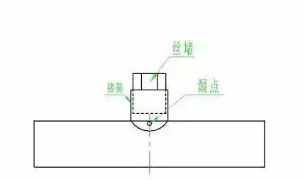 (2)當(dāng)壓力比較大時(shí)可插入尖頭鋼筋,然后用錘砸平,最后將砸平的鋼筋焊好。如一次無法完全封住,可在一側(cè)點(diǎn)焊住后再砸平,可反復(fù)使用這個(gè)方法,直到完全封住口。
