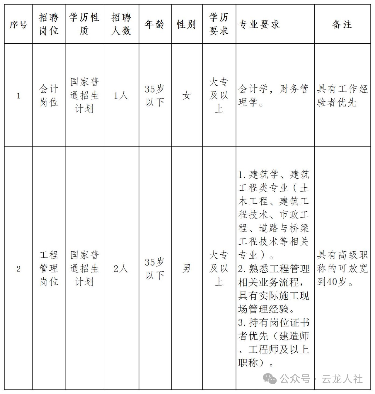 (三)公開招聘的有關(guān)信息通過“云龍關(guān)注”微信關(guān)注號向社會發(fā)布。因查看其他渠道所獲取的錯誤信息造成報名失敗的,由報考人員自行負(fù)責(zé)。