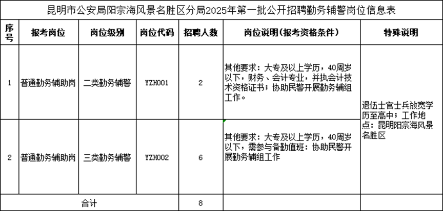 本次共招聘8人,崗位為“勤務(wù)輔警”,此崗位男性較為適合,詳見崗位信息表: