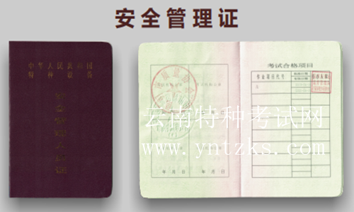 鍋爐、壓力容器、電梯、起重機械、客運索道、場(廠)內專用機動車輛的管理人員統(tǒng)稱為特種設備安全管理人員,代號:A。證書全國通用,國網查詢。4年一復審,由昆明市市場監(jiān)督管理局頒發(fā)。