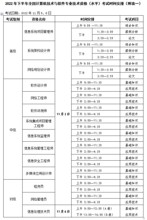 2022年下半年全國計算機技術與軟件專業(yè)技術資格(水平)考試(初級、中級、高級)將于11月5、6日舉行,現(xiàn)將云南省2022年下半年考試報名具體事項通知如下。